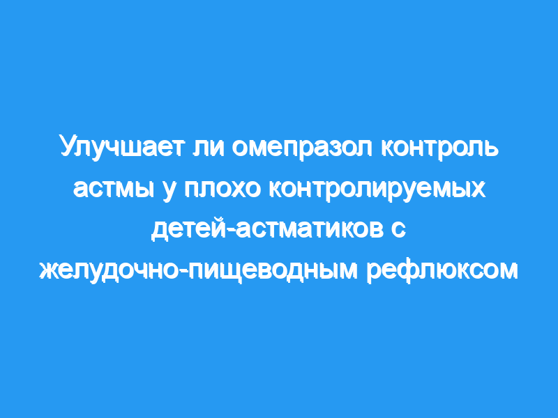 Часто упоминается роль гастроэзофагеальной рефлюксной болезни (ГЭРБ) в плохо контролируемой астме, но опубликованные исследования показали противоречивые результаты. Нашей основной целью была оценка эффективности лечения ГЭРБ в борьбе с астмой у детей.
