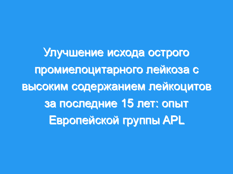 Острый промиелоцитарный лейкоз (АПЛ) с количеством лейкоцитов до лечения более 10 000/мкл по-прежнему считается более неблагоприятным прогнозом, чем АПЛ с содержанием лейкоцитов ниже 10 000/мл. Мы оценили улучшение результатов у таких пациентов в последние годы. Пациенты и методы: Девятьсот два пациента с APL, в том числе 204 пациента и 68 пациентов с количеством лейкоцитов более 10 000/мкл и более 50 000/мкл соответственно, были включены в период с 1993 по 2005 год в два последовательных рандомизированных исследования Европейской группы APL (APL 93 и APL 2000), которые тестировали, в частности, методы комбинирования полностью транс-ретиноевой кислоты (АТРА) и химиотерапии, поддерживающего лечения, увеличения доз цитарабина, раннего введения дексаметазона и профилактики ЦНС.
