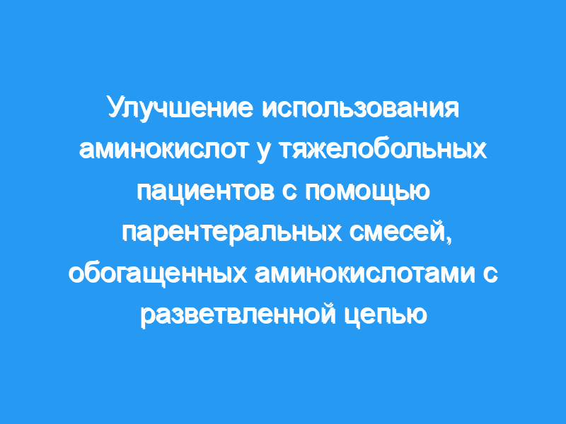 Повышенное содержание лейцина в плазме крови (из 3.92 +/- 0.48 чтобы 6.26 +/- 0.51 миллимолей в час, р менее 0,05), окисление (от 0.83 +/- 0.23 чтобы + 1.41 +/- 0.33 миллимолей в час, р менее 0,05) и чистый баланс лейцина (от + 0,48 +/- 0,23 до + 1.41 +/- 0.33 миллимолей в час, р менее 0,05) были обнаружены у пациентов, получавших раствор, обогащенный до содержания 50% аминокислот в виде BCAA. Концентрации лейцина, изолейцина и валина в плазме также значительно увеличивались при введении раствора, обогащенного BCAA, в то время как уровни глицина, тирозина и фенилаланина в плазме были значительно снижены.
