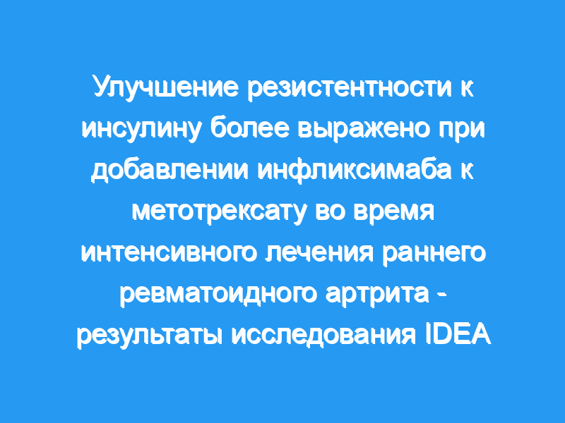 Уровень глюкозы натощак, липидов, инсулина и NT-proBNP измеряли исходно, на 26 и 78 неделях, у 79 пациентов с РА, не страдающих СД, без сердечно-сосудистых заболеваний, в рамках двойного слепого рандомизированного контролируемого исследования MTX с инфликсимабом (IFX) или метилпреднизолоном в качестве индукционная терапия. Оценка модели гомеостаза — для измерения IR использовали расчетный IR (HOMA-IR) (глюкоза*инсулин/405). Было использовано многократное вменение, и линейный регрессионный анализ был скорректирован с учетом исходных значений.