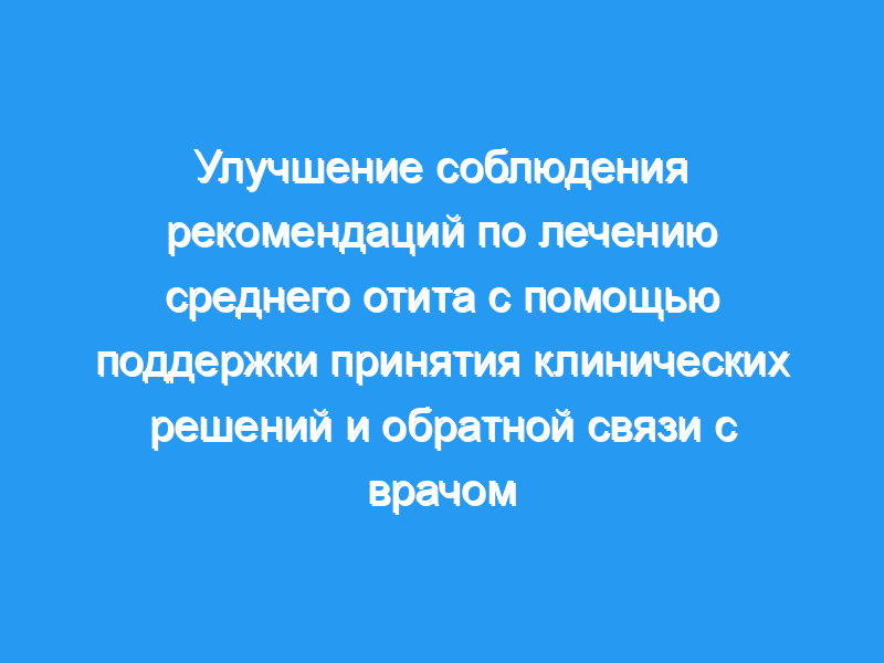 Поддержка принятия клинических решений и обратная связь с результатами являются эффективными стратегиями улучшения соблюдения рекомендаций по лечению среднего отита. Однако сочетание этих двух вмешательств ничуть не лучше, чем любое из них, проводимое по отдельности.