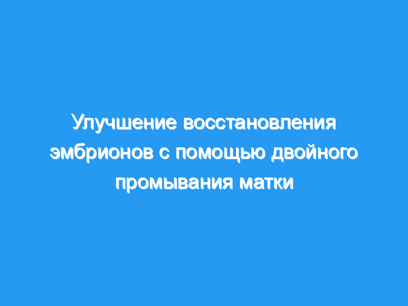 Двести десять процедур восстановления эмбрионов были проведены с использованием метода двойного промывания матки, и результаты были сопоставлены с 432 обычными однократными процедурами.- процедура промывания.