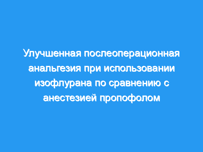 Эти результаты показали, что анестезия изофлураном обеспечивает лучшую анальгезию, чем анестезия пропофолом, в первые шесть часов после абдоминопластики.