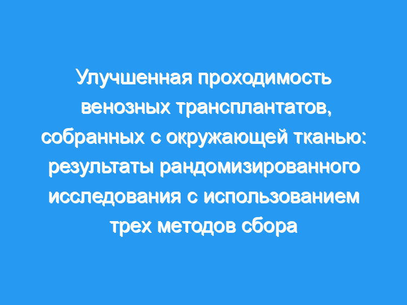 Техника забора подкожной вены для аортокоронарного шунтирования влияет на судьбу венозных трансплантатов. Скорость проходимости новой методики «без прикосновения», при которой вена собирается с помощью ножки окружающей ткани и не растягивается, сравнивалась с двумя другими методами.