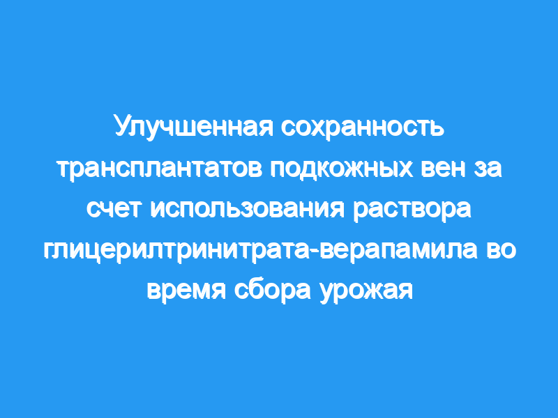 Растяжение под высоким давлением во время забора повреждает подкожную вену (SV) и может способствовать последующей окклюзии коронарного шунтирования (АКШ). Нанесение сосудорасширяющих средств на трансплантат во время сбора урожая может уменьшить необходимость в растяжении под высоким давлением и улучшить качество трансплантата. Мы проверили влияние раствора сосудорасширяющего средства, содержащего глицерилтринитрат и верапамил (GV) или обычного агента папаверина (Pap), на давление, необходимое для преодоления спазма SV, а также на структуру и биохимию трансплантата SV. Методы и результаты: Тридцать шесть пациентов, перенесших АКШ, были случайным образом распределены для получения местного и внутрипросветного раствора GV, местного Папаниколау или местного и внутрипросветного раствора Рингера (необработанного) на SV во время сбора урожая. Регистрировали пиковое и среднее давление, необходимое для расширения вены. Образцы СВ были взяты для микроскопии и биохимического анализа непосредственно перед тем, как мы наложили анастомоз. Процент покрытия эндотелием рассчитывали путем измерения площади окрашенных препаратов интимы вены. Результаты для пиковых давлений (мм рт. ст.) были следующими: необработанный, 479.2 +/- 27.5 , Пап, 384.8 +/- 29.0 , и GV, 309.5 +/- 28.3 (P <, .001, GV плюс Pap по сравнению с необработанным), и результаты для среднего давления (мм рт. ст.) были необработанными, 136.2 +/- 9.6 , Пап, 102.2 +/- 10.8 , и GV, 98.0 +/- 8.3 (P <, 0,01, GV плюс Папаниколау по сравнению с необработанным). Результаты для эндотелиального покрытия (%) были следующими: необработанный, 43.7 +/- 7.0 , Пап, 44.1 +/- 9.2 , и GV, 68.7 +/- 7.0 (P <, 0,05, GV по сравнению с Pap), и результаты для АТФ (нмоль/г влажной массы) были следующими: необработанный, 67.3 +/- 12.7 , Пап, 112.0 +/- 19.4 , и GV, 132.5 +/- 22.7 (P <, 0,05, GV плюс Папаниколау по сравнению с необработанным).