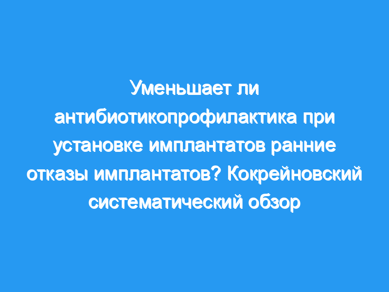 Заявление о конфликте интересов: Марко Эспозито является первым автором двух включенных исследований, однако он не участвовал в оценке качества этих исследований. Этот обзор основан на систематическом обзоре Кокрейна под названием «Вмешательства для замены отсутствующих зубов: антибиотики при установке зубных имплантатов для предотвращения осложнений», опубликованном в Библиотеке Кокрейна (см. http://www.cochrane.org для получения дополнительной информации). Систематические обзоры Кокрейна регулярно обновляются, чтобы включать новые исследования, а также в ответ на комментарии и критические замечания читателей. Если вы хотите прокомментировать этот обзор, пожалуйста, отправьте свои комментарии на веб-сайт Cochrane или Марко Эспозито. Для получения самой последней версии обзора следует обратиться в Кокрейновскую библиотеку. Результаты Кокрейновского обзора могут быть интерпретированы по-разному, в зависимости от точки зрения людей и обстоятельств. Пожалуйста, внимательно рассмотрите представленные выводы. Это мнения авторов обзора, и они не обязательно разделяются Кокрановским сотрудничеством.