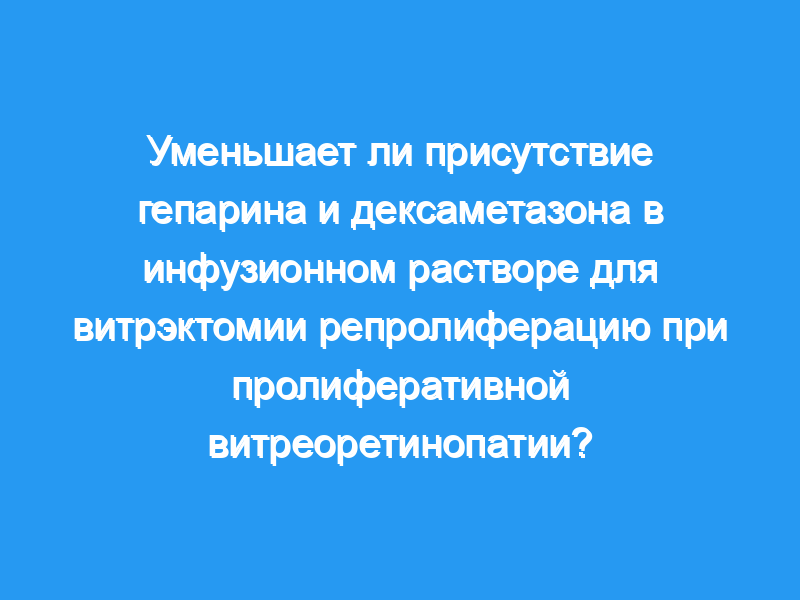 Тенденция этого рандомизированного пилотного исследования предполагает, что добавление HD в инфузионный раствор для витрэктомии может снизить скорость репролиферации при PVR и, возможно, снизить частоту гипотонии. Послеоперационное кровотечение было более частым при ГД, но не вызывало повторного кровотечения или изменения визуального результата. Потребуется многоцентровое исследование с участием большего числа пациентов, чтобы лучше оценить эффективность HD в качестве фармакологического дополнения к PVR-хирургии.