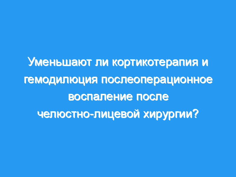Оценить эффективность кортикостероидов и предоперационной острой нормоволемической гемодилюции (PANHD) в уменьшении послеоперационного воспаления после челюстно-лицевой хирургии. Дизайн исследования: Рандомизированное клиническое исследование. Пациенты: Тридцать два пациента, которым была запланирована остеотомия верхней челюсти по поводу дисморфии лица, были рандомизированы в четыре группы по восемь человек (PANHD или нет, кортикостероиды или нет).