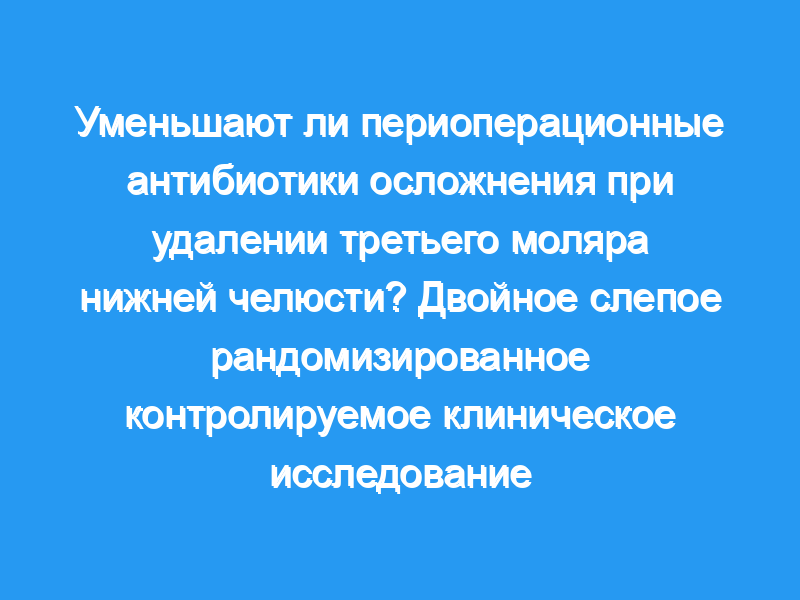 Пациенты, получавшие плацебо перед удалением нижнего третьего моляра, испытывали большую боль и воспаление, чем те, кто получал антибиотики либо перед операцией, либо и то, и другое. до и после операции. Следует рассмотреть другие варианты, такие как использование местных антибиотиков, для уменьшения проблем, включая бактериальную резистентность, вызванную чрезмерным использованием системных антибиотиков.