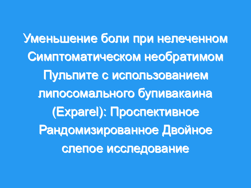 При лечении пациентов с симптоматическим необратимым пульпитом эндодонтическая санация является предсказуемым методом облегчения боли. Однако существуют клинические ситуации, в которых неотложная помощь не может быть оказана немедленно. Неизученным вариантом лечения в этих случаях может быть использование анестетика длительного действия для уменьшения боли при необратимом пульпите без лечения. Некоторые медицинские исследования показали возможность инфильтрации липосомального бупивакаина (Exparel, Pacira Pharmaceuticals, Сан-Диего, Калифорния) для продления обезболивания и снижения потребления опиоидов в послеоперационном периоде. Управление по контролю за продуктами и лекарствами одобрило Exparel только для инфильтрации, поэтому целью этого исследования было сравнить инфильтрацию липосомального бупивакаина с бупивакаином для контроля боли при необратимом пульпите без лечения с симптомами.