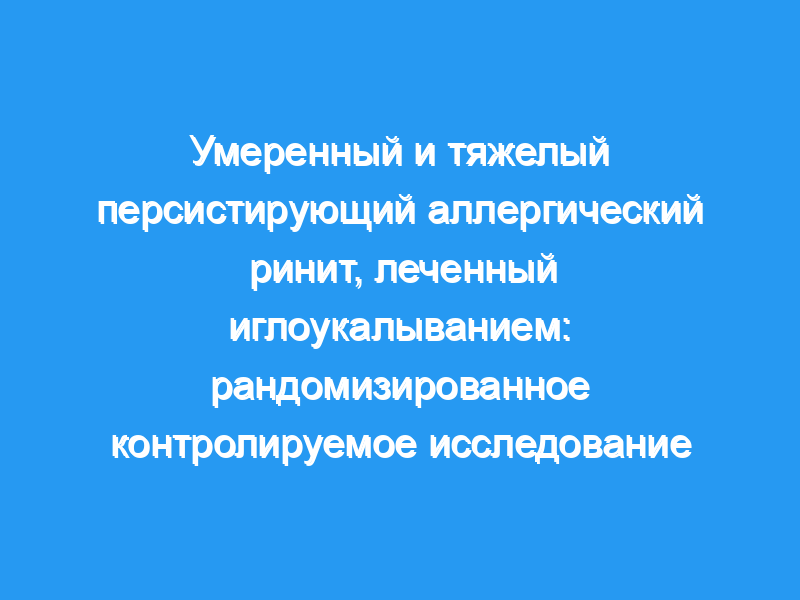 Иглоукалывание является безопасным и эффективным вмешательством в умеренный и тяжелый персистирующий аллергический ринит. По сравнению с группой западной медицины, эффективность в группе иглоукалывания гораздо более выгодна из-за ее долговечности.