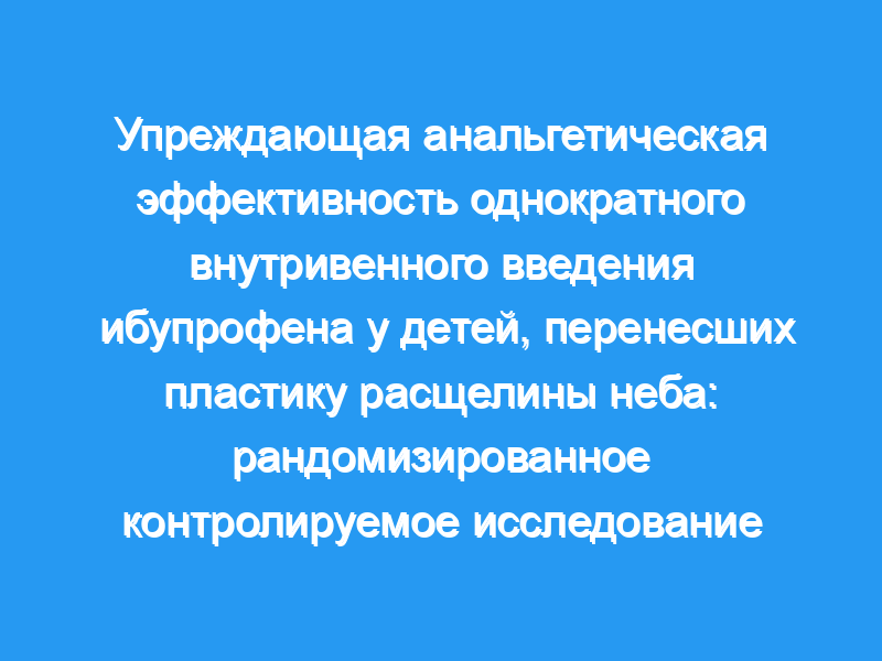 Упреждающее внутривенное введение ибупрофена в дозе 10 мг/кг при индукции имело значительный опиоидосберегающий эффект в раннем послеоперационном периоде без явных побочных эффектов у детей, перенесших палатопластику. Пробная регистрация: CTR, CTR2100043718, 27/02/2021 http://www.chictr.org.cn/showproj.aspx?proj=122187 .