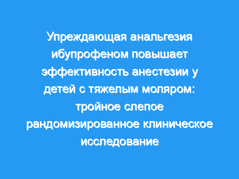 В этом исследовании оценивалась эффективность превентивной анальгезии у детей с тяжелой ИМГ, постэруптивным разрушением эмали и гиперчувствительностью. Методика: Вводили ибупрофен (10 мг/кг веса ребенка) или плацебо с последующей инфильтративной анестезией и восстановлением с помощью полимерного композита. Гиперчувствительность оценивалась в течение пяти минут. Данные были проанализированы с использованием критерия хи-квадрат, точного критерия Фишера и t-критерия.