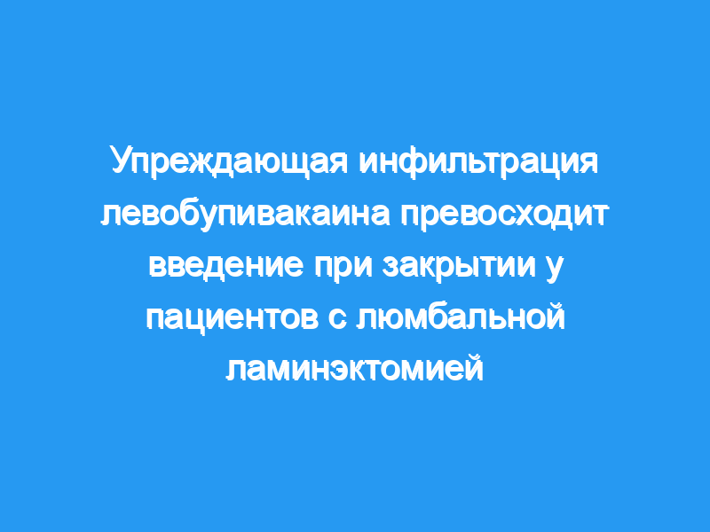 Кроме того, данные указывают на то, что по сравнению с инфильтрацией этих препаратов при закрытии раны, упреждающая инъекция левобупивакаина или левобупивакаин-метилпреднизолона в мышца вблизи места операции обеспечивает более эффективную анальгезию после поясничной дискэктомии.