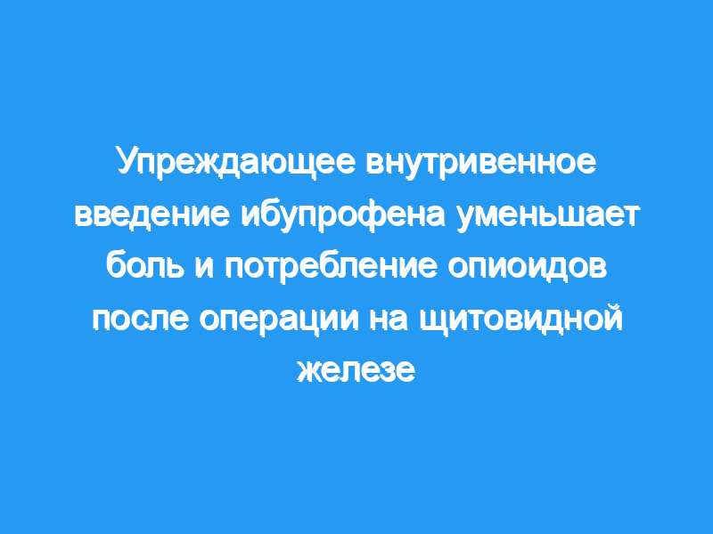 Основной целью этого исследования было изучение влияния упреждающего однократного внутривенного введения ибупрофена на послеоперационное потребление опиоидов в течение 48 часов и послеоперационную боль у пациентов, перенесших тиреоидэктомию.