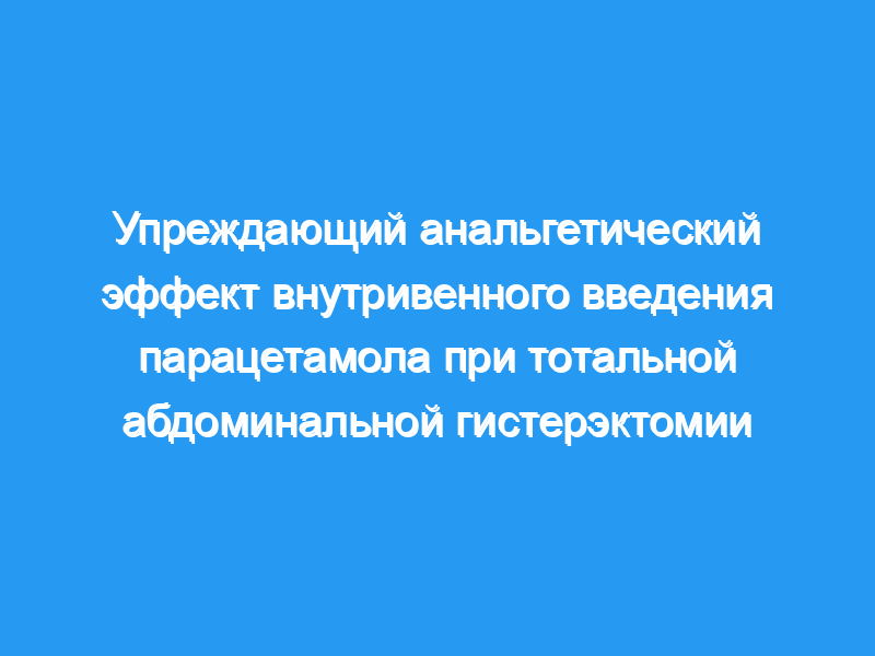 При тотальной абдоминальной гистерэктомии превентивное внутривенное введение парацетамола в дозе 1 г обеспечивало хорошее качество послеоперационной анальгезии с уменьшением потребления морфина и минимальными побочными эффектами.