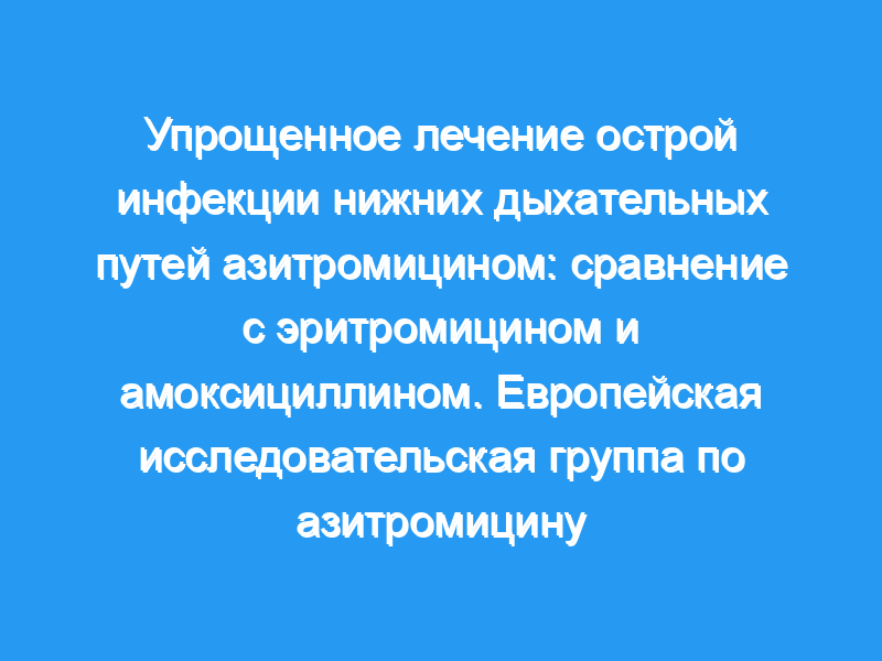 В двух рандомизированных многоцентровых исследованиях лечение азитромицином (1,5 г в пяти или шести дозах в течение 5 дней) сравнивали с лечением эритромицином (14 или 20 г в 28 или 40 дозах в течение 7 или 10 дней) и лечением амоксициллином (10,5 г в 21 дозе в течение 7 дней) у пациентов с острая инфекция дыхательных путей.
