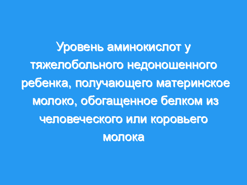 Качество белка, будь то изолят белка человеческого молока или продукт из сывороточного белка коровьего молока, используемый для обогащения человеческого молока до белковой нагрузки. 3,0-3,5 г/кг/24 ч, не вызывал каких-либо значимых изменений в аминокислотных профилях периферической крови.