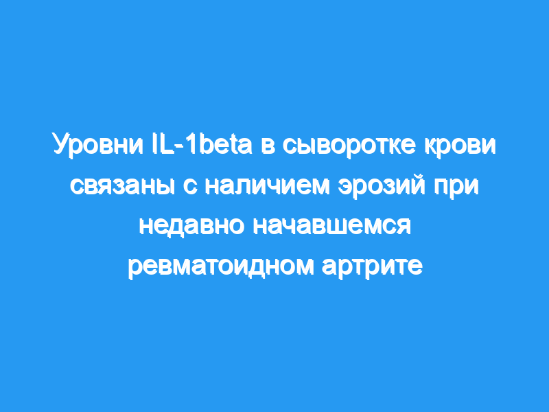 Уровень IL-1beta в сыворотке крови в значительной степени связан с наличием эрозий в начале РА, но его прогностическая ценность ослабляется или теряется при назначении однократного или комбинированного лечения DMARD. Измерение уровня IL-1beta на момент постановки диагноза у одного пациента не может быть использовано для оценки эрозивного характера заболевания или прогноза.