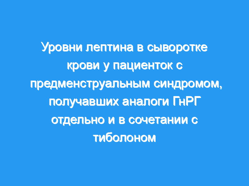 Гипоэстрогения, вызванная аналогами ГнРГ (GnRHa), по-видимому, не влияет на уровень лептина у нормальных женщин и женщин с ПМС, и добавление тиболона не влияет на эти уровни. Поскольку симптоматика ПМС значительно улучшилась во время лечения только GnRHa или в сочетании с тиболоном, маловероятно, что изменения уровня лептина могут играть важную роль в патофизиологии ПМС.