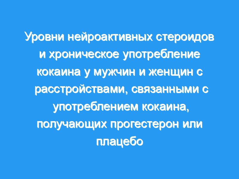 Предпосылки и цели: Нейроактивные стероиды (NAS) могут играть определенную роль в зависимости, при этом наблюдается увеличение в ответ на острый стресс и употребление наркотиков, но уменьшается при хроническом употреблении психоактивных веществ, что позволяет предположить, что нейроадаптация NAS может происходить при хроническом употреблении психоактивных веществ. Однако уровни NAS у зависимых людей систематически не изучались. Здесь мы оценили группу NAS у мужчин и женщин с расстройством, связанным с употреблением кокаина (CUD), которые участвовали в клиническом лабораторном исследовании прогестерона. Сорок шесть человек с жвачкой были включены в рандомизированное плацебо-контролируемое лабораторное исследование для оценки влияния прогестерона на уровни различных NAS. На 5-й день 7-дневного стационарного режима лечения прогестероном в дозе 400 мг/сут (15M/8F) или плацебо (14M/9F) уровни NAS в плазме, как известно, находятся ниже прогестерона (аллопрегнанолон, прегнанолон), а NAS не участвует в пути синтеза прогестерона (андростандиол, тестостерон, дегидроэпиандростерон [DHEA] и предшественник NAS, прегненолон) анализировали с использованием высокочувствительной газовой хроматографии/масс-спектрометрии (ГХ/МС). Также была оценена взаимосвязь между каждым из NAS и хроничностью употребления кокаина.