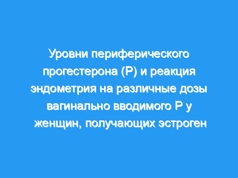 Два университетских следственных сайта. Пациентка(ы): Двадцать здоровых женщин в постменопаузе с гистологически нормальным эндометрием. Вмешательство (ы): Перорально вводили 17 бета-Е2 каждый день 28-дневного цикла, ежедневно вводили вагинальный суппозиторий Р в соответствии с графиком рандомизации в течение 15-28 дней каждого цикла, собирали образцы крови, на 25-й день проводили биопсию эндометрия, и пациенток переводили на следующий цикл обработки после периода вымывания не менее 30 дней. Основные показатели результата: Средние уровни Р в крови, датировка/конверсия эндометрия. Результат (ы): Наблюдалась хорошая вагинальная абсорбция Р для всех доз. Конверсия эндометрия происходила во всех циклах с дозировкой 200 и 400 мг/сут, в то время как дозировка 100 мг/сут не приводила к последовательному преобразованию первичного эндометрия. Также наблюдалась значительно повышенная тенденция к более раннему кровотечению и кровянистым выделениям при дозировке 100 мг/сут. Заключение (ы): Оба режима дозирования в дозе 200 и 400 мг/сут последовательно преобразуют эндометрий, насыщенный эстрогенами, и приводят к соответствующим датировкам эндометрия и характеру кровотечений. Тем не менее, доза 400 мг/сут обеспечивает самые высокие устойчивые уровни в крови и может быть лучшим режимом дозирования для дальнейшего изучения.