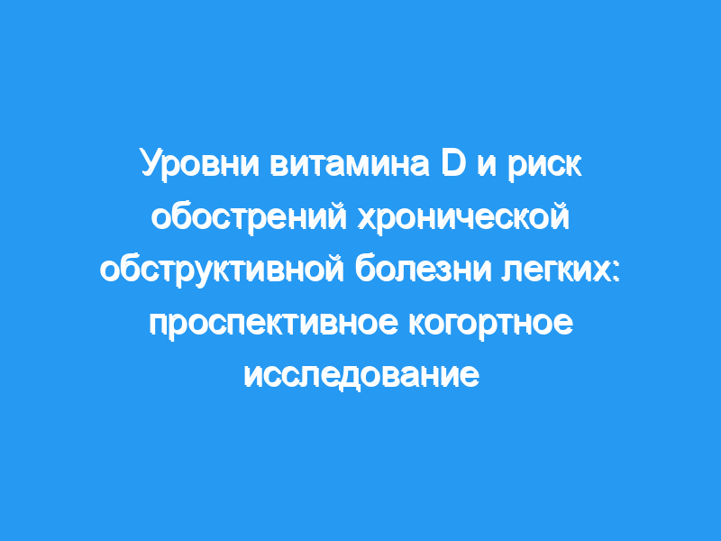 Обоснование: Низкие уровни 25-гидроксивитамина D (25[OH]D) в крови были связаны с более высоким риском респираторных инфекций в общей популяции и более высоким риском обострений заболеваний легких у людей с астмой. Мы предположили, что низкий уровень 25(OH)D в крови у пациентов с хронической обструктивной болезнью легких (ХОБЛ) будет связан с повышенным риском острых обострений ХОБЛ (AECOPD).