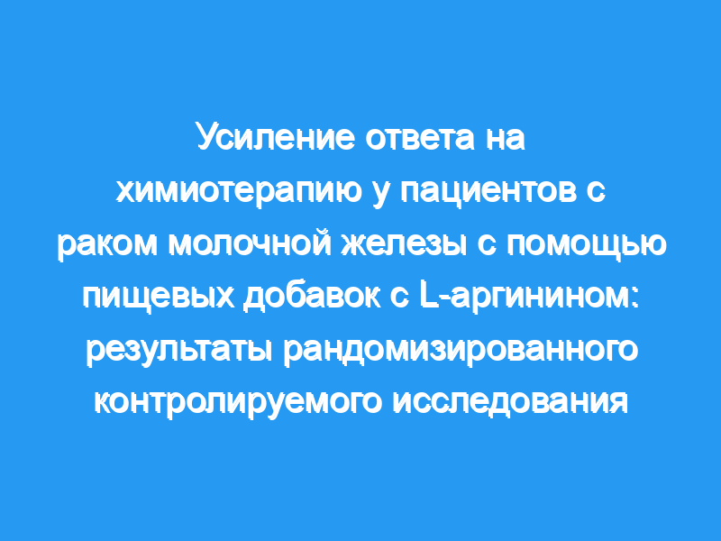 Поэтому мы провели рандомизированное двойное слепое, плацебо-контролируемое исследование, чтобы определить, полезен ли прием добавок L-аргинина пациентам с раком молочной железы, проходящим неоадъювантную химиотерапию.