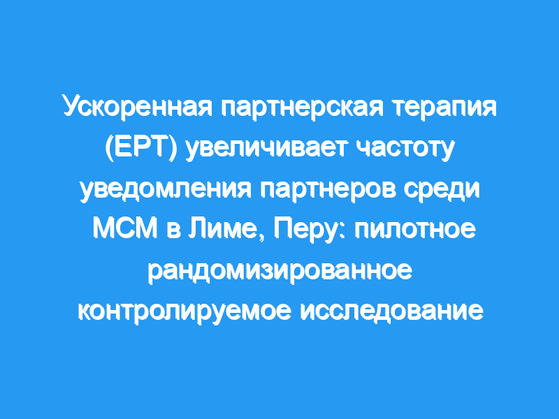 Было показано, что ускоренная партнерская терапия (EPT) улучшает результаты лечения среди гетеросексуальных партнеров лиц с излечимыми инфекциями, передаваемыми половым путем (ИППП). Хотя использование EPT с мужчинами, имеющими половые контакты с мужчинами (МСМ), обсуждается, из-за потенциальной упущенной возможности диагностировать неопознанные случаи заражения ВИЧ и сифилисом у партнеров с симптомами, увеличение числа уведомлений партнеров (PN) в результате использования EPT может способствовать тестированию и лечению других неопознанных партнеров.. Мы оценили влияние EPT на самооценку PN среди МСМ в Перу с гонорейной (GC) и/или хламидийной (CT) инфекцией.