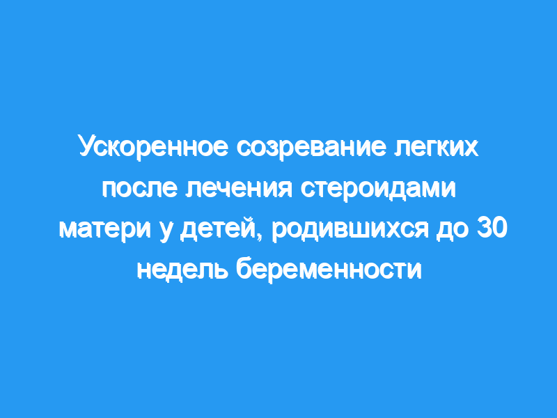 Значительно больше из этих младенцев имели зрелое соотношение L/S >, or = 2,7 (p <, 0,02), а пренатальное лечение глюкокортикоидами было связано с заметно увеличенной выживаемостью (отношение шансов 2,4, p <, 0,02). На основании мета-анализа литературы и результатов нашего исследования мы пришли к выводу, что ускоренное созревание легких следует за пренатальным стероидным лечением со снижением частоты RDS даже у очень незрелых плодов.