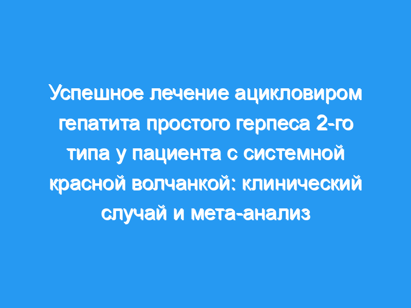 Это первый зарегистрированный случай успешного парентерального лечения ацикловиром Гепатит ВПГ у пациента с волчаночным нефритом, недавно перенесшего иммуносупрессию циклофосфамидом, и включает метаанализ для проверки гипотезы о том, что начальные маркеры поражения печени могут предсказывать исход лечения ацикловиром.