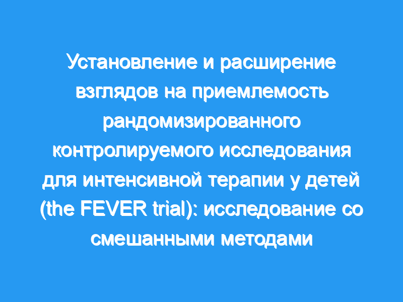 Изучить мнения родителей и персонала о приемлемости рандомизированного контролируемого исследования, исследующего температурные пороги для жаропонижающего вмешательства у тяжелобольных детей с лихорадкой и инфекцией (испытание FEVER) в ходе многоэтапного пилотного исследования. Дизайн: Исследование смешанными методами с использованием данных, собранных в три временных момента: (1) до, (2) во время и (3) после пилотного испытания.