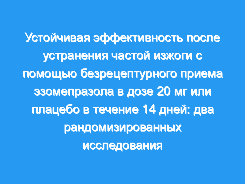 При частой изжоге рекомендуется двухнедельный курс терапии безрецептурным ингибитором протонной помпы (ИПП). Было проведено ограниченное исследование устойчивой эффективности краткосрочной терапии ИППП после прекращения лечения. Эзомепразол в дозе 20 мг оценивали в течение семидневного периода наблюдения после двухнедельного периода лечения с использованием объединенных данных двух идентичных рандомизированных двойных слепых плацебо-контролируемых исследований.