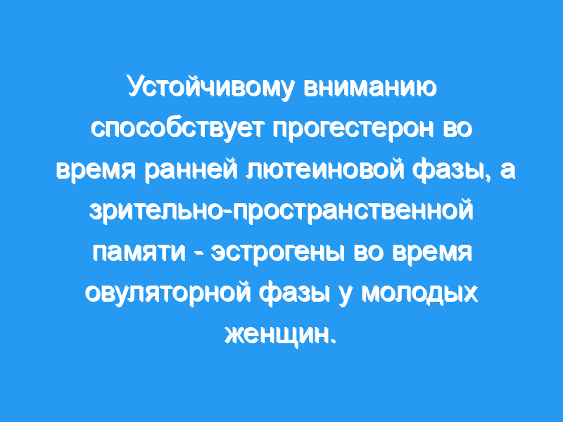 Эти результаты указывают на то, что устойчивому вниманию способствует прогестерон ранней лютеиновой фазы и не связаны ни с какими другими нейропсихологическими переменными.