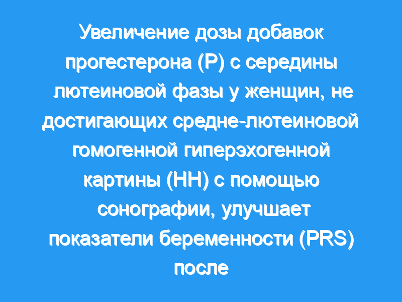 Увеличение дозы прогестерона у лиц, не достигших уровня HH, значительно улучшило частоту наступления беременности по сравнению с контрольной группой, не достигшей уровня HH, и продемонстрировало тенденцию к более высокой частоте наступления беременности, чем у лиц с уровнем HH.