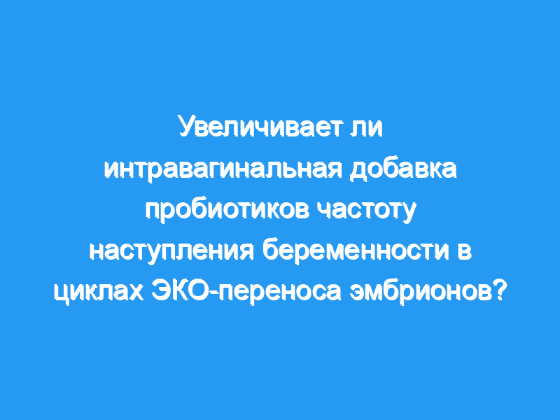 Интравагинальное введение пробиотиков сразу после извлечения яйцеклеток не влияет на колонизацию влагалища или частоту наступления беременности в циклах ЭКО.