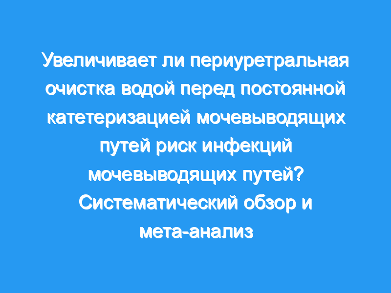 Определить, увеличивает ли периуретральная очистка водой перед постоянной катетеризацией мочевыводящих путей риск инфекций мочевыводящих путей (ИМП) по сравнению с исследованиями с использованием противоинфекционных средств.