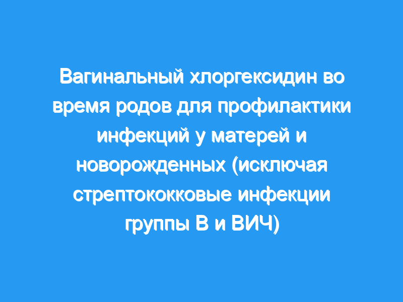 Оценить эффективность и побочные эффекты спринцевания влагалища хлоргексидином во время родов в снижении уровня инфекций у матерей и новорожденных (исключая стрептококковые инфекции группы В и ВИЧ). Методы поиска: Мы провели поиск по Реестру исследований Кокрейновской группы по беременности и родам (30 июня 2014 г.), справочным спискам извлеченных отчетов, журнальным письмам и редакционным статьям. Критерии отбора: Рандомизированные или квазирандомизированные исследования, сравнивающие вагинальное спринцевание хлоргексидином во время родов с плацебо или другим вагинальным дезинфицирующим средством для предотвращения (уменьшения) инфекций у матерей и новорожденных (исключая стрептококковые инфекции группы В и ВИЧ). Сбор и анализ данных: Два автора обзора независимо оценивали приемлемость и качество исследования, извлекали и интерпретировали данные. Третий автор обзора проанализировал и интерпретировал полученные данные. Четвертый автор также интерпретировал полученные данные.