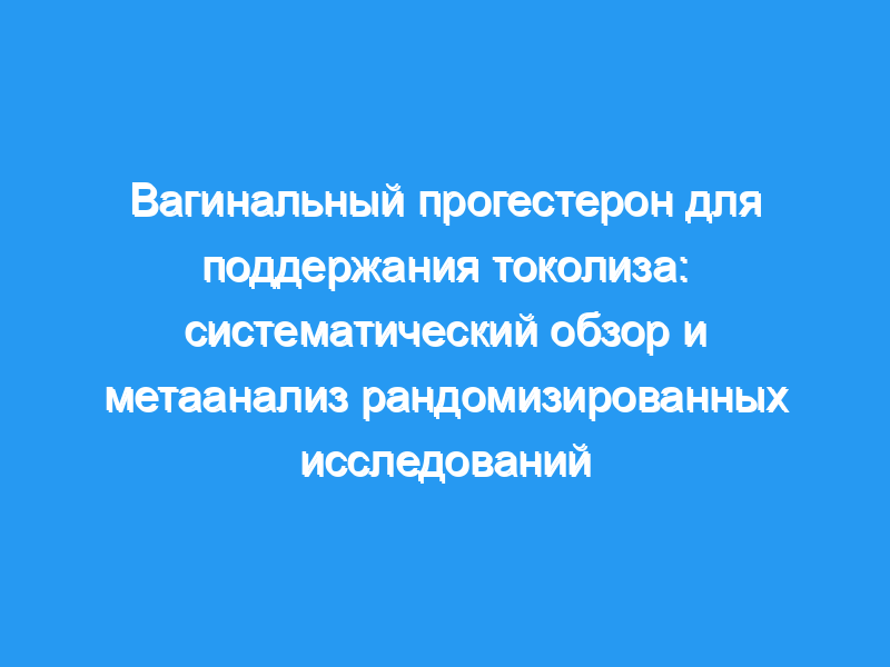 Поддерживающий токолиз вагинальным прогестероном связан с профилактикой ПТБ, значительным пролонгированием беременности и снижением неонатального сепсиса. Однако, учитывая частое отсутствие ослепления и в целом низкое качество исследований, в настоящее время мы не предлагаем изменения в клиническом уходе за женщинами с остановленной PTL. Вместо этого мы предлагаем хорошо спланированные плацебо-контролируемые рандомизированные исследования для подтверждения результатов нашего метаанализа.