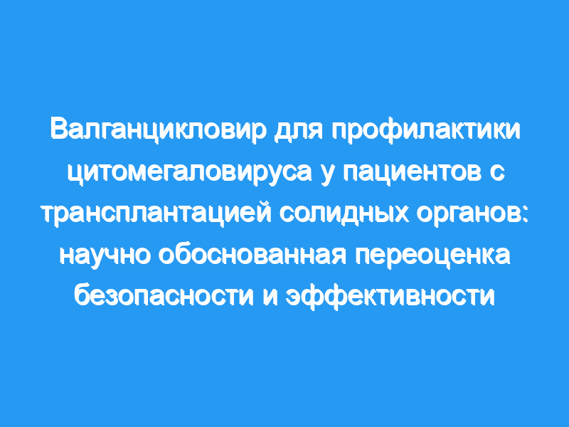 Несколько противовирусных препаратов продемонстрировали эффективность в профилактике цитомегаловирусных (ЦМВ) инфекций у пациентов с трансплантацией солидных органов (СОТ). Недавно одобренный валганцикловир является наиболее часто используемым и самым дорогим препаратом для профилактики ЦМВ. Данные о безопасности и эффективности были получены в результате одного исследования. Мы предположили, что валганцикловир может быть не таким безопасным и не более эффективным, чем другие методы профилактики ЦМВ.