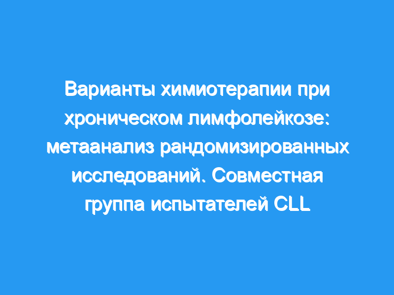 Рандомизированные исследования, оценивающие сроки и интенсивность начальной химиотерапии при хроническом лимфоцитарном лейкозе (ХЛЛ), в целом, были слишком малы, чтобы обеспечить отдельно достоверные результаты. Мы сравнили влияние на выживаемость следующих препаратов: а) немедленная и отсроченная химиотерапия на ранних стадиях ХЛЛ и б) комбинированная химиотерапия (например, циклофосфамид и винкристин плюс преднизон/преднизолон [КС] или КС плюс доксорубицин [ЧОП]) по сравнению с монотерапией хлорамбуцилом в качестве лечения первой линии на более поздних стадиях ХЛЛ. болезнь.