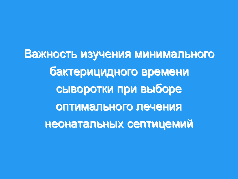 Все пациенты вылечились.Медиана SBA составила соответственно 1/128 и 1/64 для групп I и II. Однако средние МБТ для групп I и II составили соответственно 1,2 ч +/- 0,8 и 3,9 ч +/- 1,4. Гибель была более быстрой в группе I (р менее 0,01). MBTS может быть клинически полезным дополнительным тестом, когда ожидается оптимальная терапия.