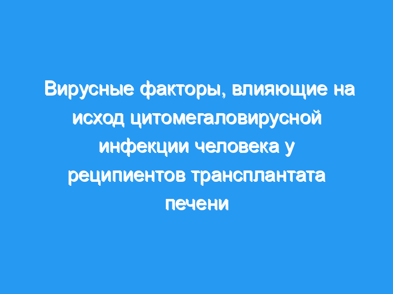 Изучите вирусные факторы, влияющие на исход ЦМВ-инфекции после профилактики валганцикловиром или лабораторно контролируемой превентивной терапии у реципиентов ОЛТ. План исследования: Ценность профилактики валганцикловиром и лабораторно контролируемой превентивной терапии для профилактики ЦМВ-инфекции и заболевания наблюдалась у 64 реципиентов ОЛТ. Профилактика была проведена всем серонегативным по ЦМВ реципиентам, получившим печень от серопозитивного донора (D+R-, n=15), а все остальные реципиенты были рандомизированы для получения либо профилактики (n=24), либо лабораторно контролируемой превентивной терапии (n=25). Реципиентов контролировали на предмет ЦМВ-ДНК, вирусной нагрузки, появления устойчивых к противовирусным препаратам штаммов и сопутствующих инфекций.