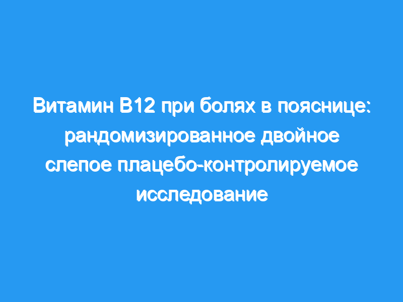 Целью этого двойного слепого рандомизированного плацебо-контролируемого исследования было изучение эффективности и безопасности внутримышечного введения витамина В12 (Трикортин 1000) при лечении болей в пояснице у пациентов с механическим или ирритативным люмбаго.