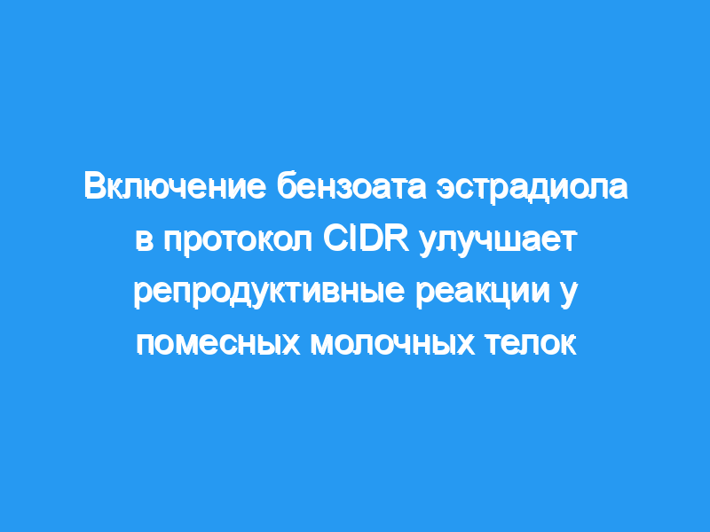 Сделан вывод, что включение бензоата эстрадиола в протокол CIDR полезно для улучшения признаков течки и усиления овуляции и беременности на ИИ у помесных молочных телок.