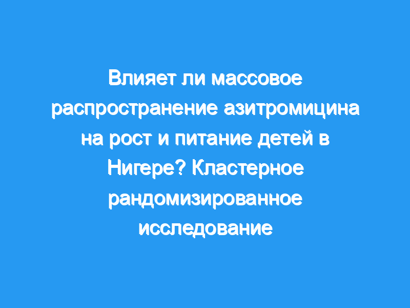 Применение антибиотиков на животных демонстрирует улучшение роста независимо от наличия или отсутствия клинических признаков инфекционного заболевания. Антибиотики, используемые для борьбы с трахомой, могут сыграть непреднамеренную роль в улучшении роста ребенка. Методология: В этом подисследовании более крупного рандомизированного контролируемого исследования мы оцениваем антропометрию детей дошкольного возраста в рандомизированном на уровне сообщества исследовании массового перорального приема азитромицина при трахоме в Нигере. Мы измерили рост, вес и среднюю окружность предплечья (MUAC) в 12 сообществах, рандомизированных для получения ежегодного массового лечения азитромицином для всех, по сравнению с 12 сообществами, рандомизированными для получения двухлетнего массового лечения азитромицином для детей, через 3 года после первоначального массового лечения. Мы собрали данные измерений у 1034 детей в возрасте 6-60 месяцев. Основные результаты: Мы не обнаружили различий в распространенности истощения среди детей в 12 сообществах, получавших ежегодное лечение, которые получали три массовых распределения азитромицина, по сравнению с 12 сообществами, получавшими лечение раз в два года, которые получали шесть массовых распределений азитромицина (отношение шансов = 0,88, 95% доверительный интервал = 0,53-1,49). Выводы/значимость: Мы не смогли продемонстрировать статистически значимую разницу в задержке роста, недостаточном весе и низком MUAC у детей дошкольного возраста в сообществах, рандомизированных на ежегодное массовое лечение азитромицином или двухлетнее массовое лечение азитромицином. Роль антибиотиков в росте и питании детей остается неясной, но более масштабные исследования и лонгитюдные испытания могут помочь определить любую связь.