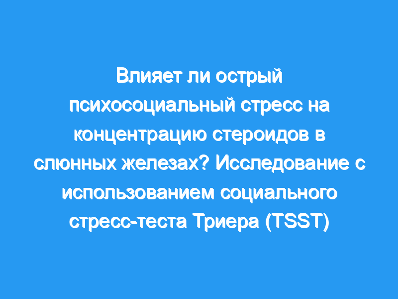 Результаты настоящего исследования предполагают, что острый психосоциальный лабораторный стресс или не оказывает сильного быстрого воздействия на слюнные гонадные стероиды.