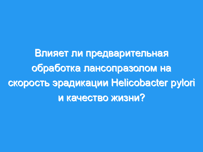 Остается спорным вопрос о том, снижает ли предварительная обработка ингибитором протонной помпы (ИПП) перед эрадикацией Helicobacter pylori скорость эрадикации. Определить влияние предварительного лечения только лансопразолом с последующим режимом эрадикации H. pylori (лансопразол 30 мг, амоксициллин 750 мг и кларитромицин 200 мг два раза в день в течение 1 недели) на скорость эрадикации и качество жизни (КЖ) пациента.