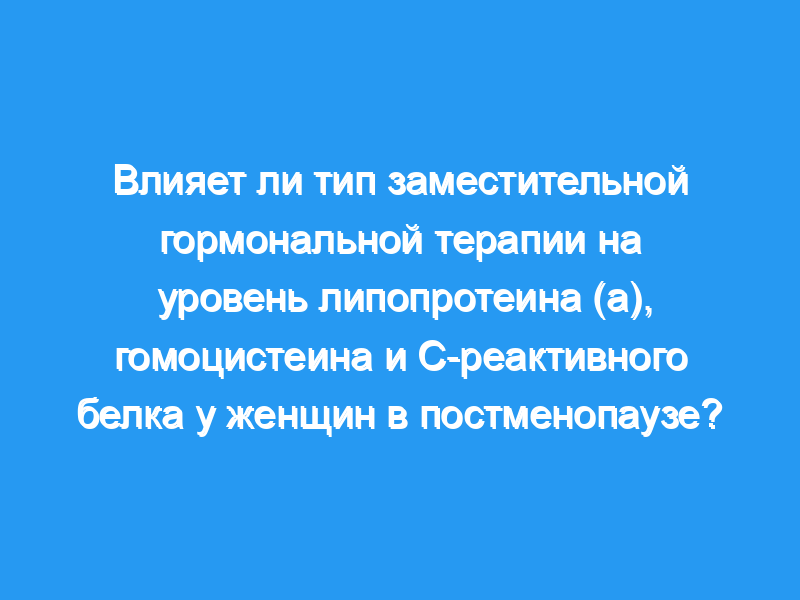 Целью исследования была оценка влияния натуральных эстрогенов, принимаемых трансдермально, и синтетических эстрогенов, принимаемых перорально, на концентрацию липопротеина (а) [Лп(а)], гомоцистеина и С-реактивного белка (СРБ) у здоровых женщин в раннем постменопаузальном периоде.. Материал Исследование проводилось на 61 здоровой женщине со средним возрастом 52.3 +/- 4.1 лет, в постменопаузальном периоде, которые были случайным образом распределены на 3 группы в зависимости от типа и способа введения продуктов. Группе I (n = 24) вводили трансдермальные эстрогены (микронизированный 17-бета-эстрадиол, Systen, Janssen-Cilag, Швейцария) и прогестерон во второй фазе цикла. II группе (n = 21) вводили гормоны перорально (Цикломеноретта). В III группу (n = 16), служившую контролем, вошли женщины, принимавшие плацебо в виде пластырей. В каждой группе терапевтические циклы длились 22 дня и сопровождались перерывом без лечения от 7 до 10 дней в течение 3-месячного периода.