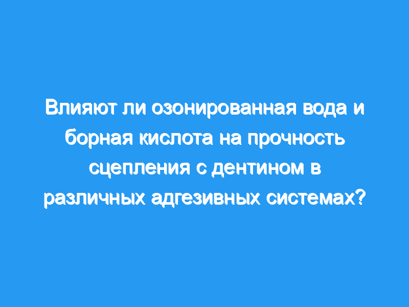 В общей сложности в этом исследовании было использовано 120 свободных от кариеса постоянных коренных зубов человека. Поверхности среднего коронарного дентина были выявлены путем разрезания окклюзионной эмали, а стандартный слой мазка был получен с использованием абразивной бумаги из карбида кремния с сеткой 600-800-1200. Образцы были случайным образом распределены на четыре группы в соответствии с используемым дезинфицирующим средством: Группа 1: Контроль (без дезинфицирующего средства), Группа 2: 2% на основе хлоргексидина (Consepsis), Группа 3: 10 частей на миллион озонированной воды (TeknO3zone), Группа 4: 5% борная кислота (ручная работа). Каждая группа была разделена на три подгруппы в зависимости от типа клея (Clearfil SE Bond, OptiBond XTR и Tokuyama Universal). Образцы были скреплены с использованием либо Clearfil SE Bond, OptiBond XTR, либо Tokuyama Universal, которые использовались в соответствии с инструкциями производителя. Полимерные композитные микроцилиндры были соединены с использованием трубок Tygon® для тестирования μ-SBS. После хранения образцов в течение 24 ч при 37°C в дистиллированной воде измеряли тест μ-SBS с помощью универсальной тестовой машины (LF Plus, Lloyd, Instrument). Результаты μ-SBS были проанализированы с помощью одностороннего дисперсионного анализа (ANOVA) и тестов Тьюки.